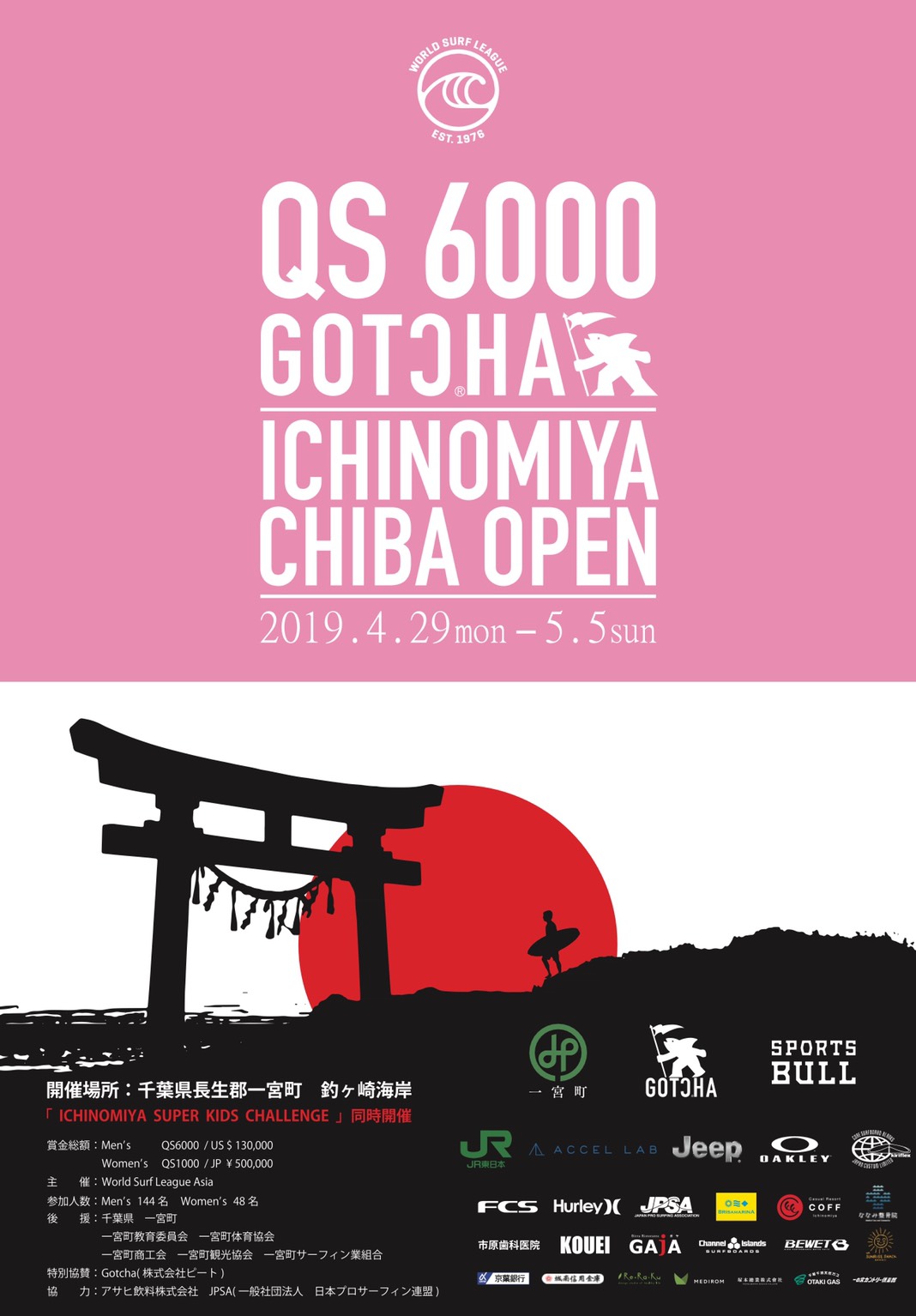 日本屈指のハイサーフエリアである千葉の中でも、サーフィン道場として長い歴史を刻み、大小問わず年間を通して多くのコンテストが行われる日本のメイン・ステージのひとつと言って過言では無い志田下こと釣ケ崎海岸を会場に、今年も国内最大級となるWSL主催の世界大会となる”Ichinomiya Chiba Open”が4/29(月)から5/5(日)までを開催期間に行なわれることが決定!!…