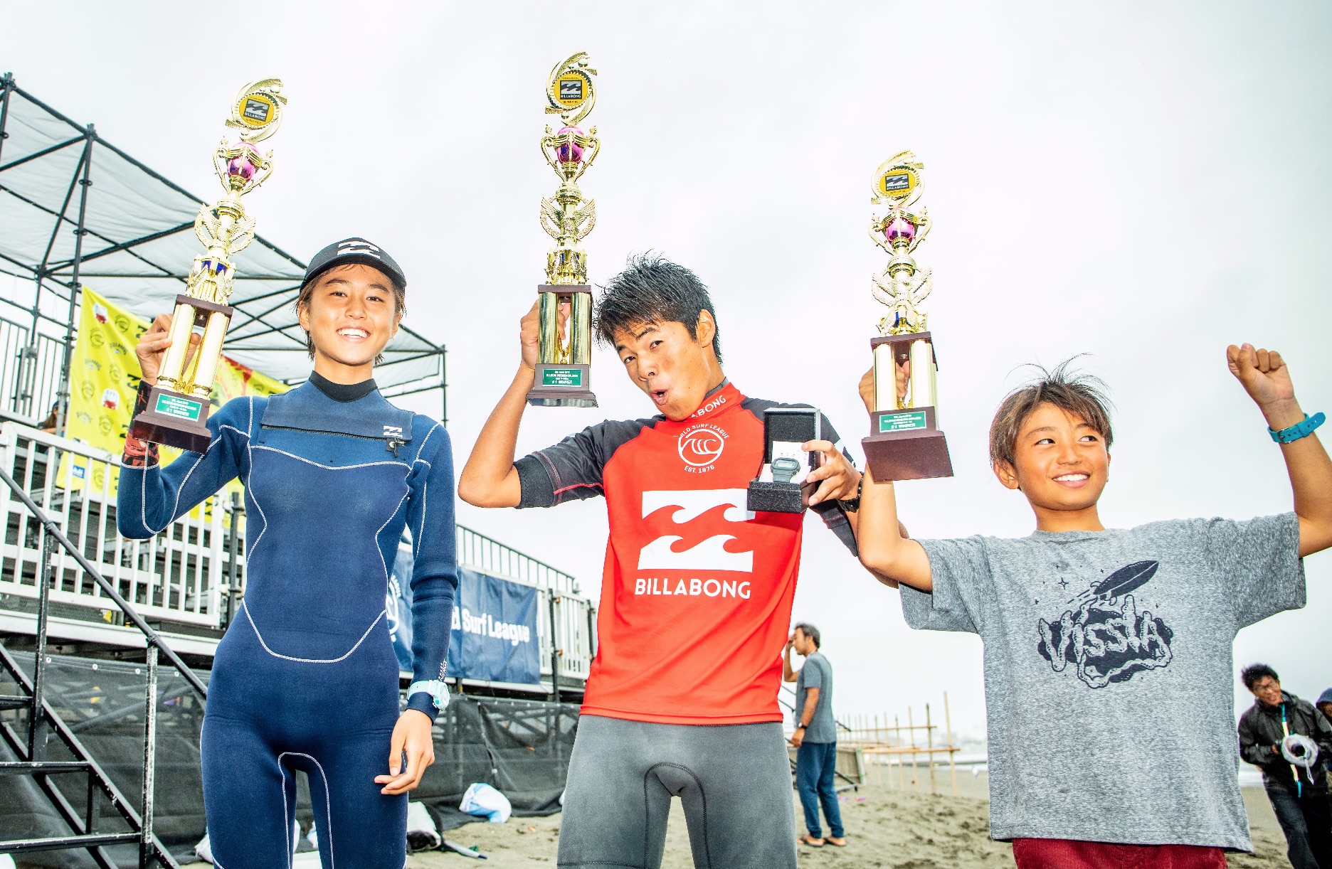 QS1500″ムラサキ湘南オープン”の会場でもある鵠沼海岸の地下道前を会場に16歳以下を対象に未来のトッププロの登竜門的ビッグコンテスト”BILLABONG Suuper Kids Challenge”が行われた。