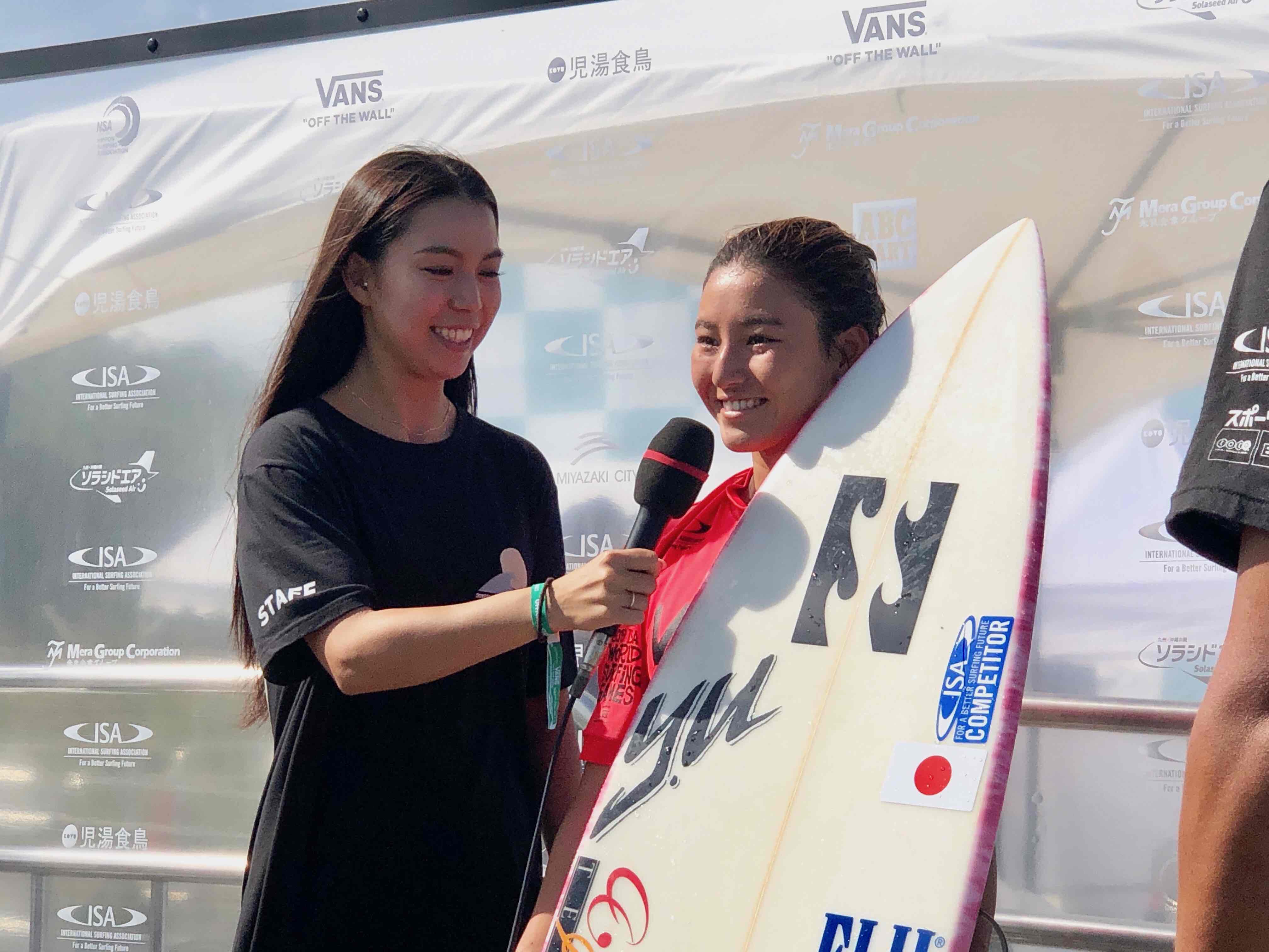 リパチャージラウンド7のヒート2でCTトップサーファーでアメリカ代表のCoutney Conlogueを相手にインターフェアを犯してしまい、惜しくもここで敗退となったが、日本代表WOMENSメンバーの中ではもちろん、アジア諸国の中で1番いい成績を残したことから、現時点での2020年東京オリンピックのサーフィン日本代表選手最有力候補となった松田詩野。まだ代表選手として決定ではないが、今、日本代表選手…