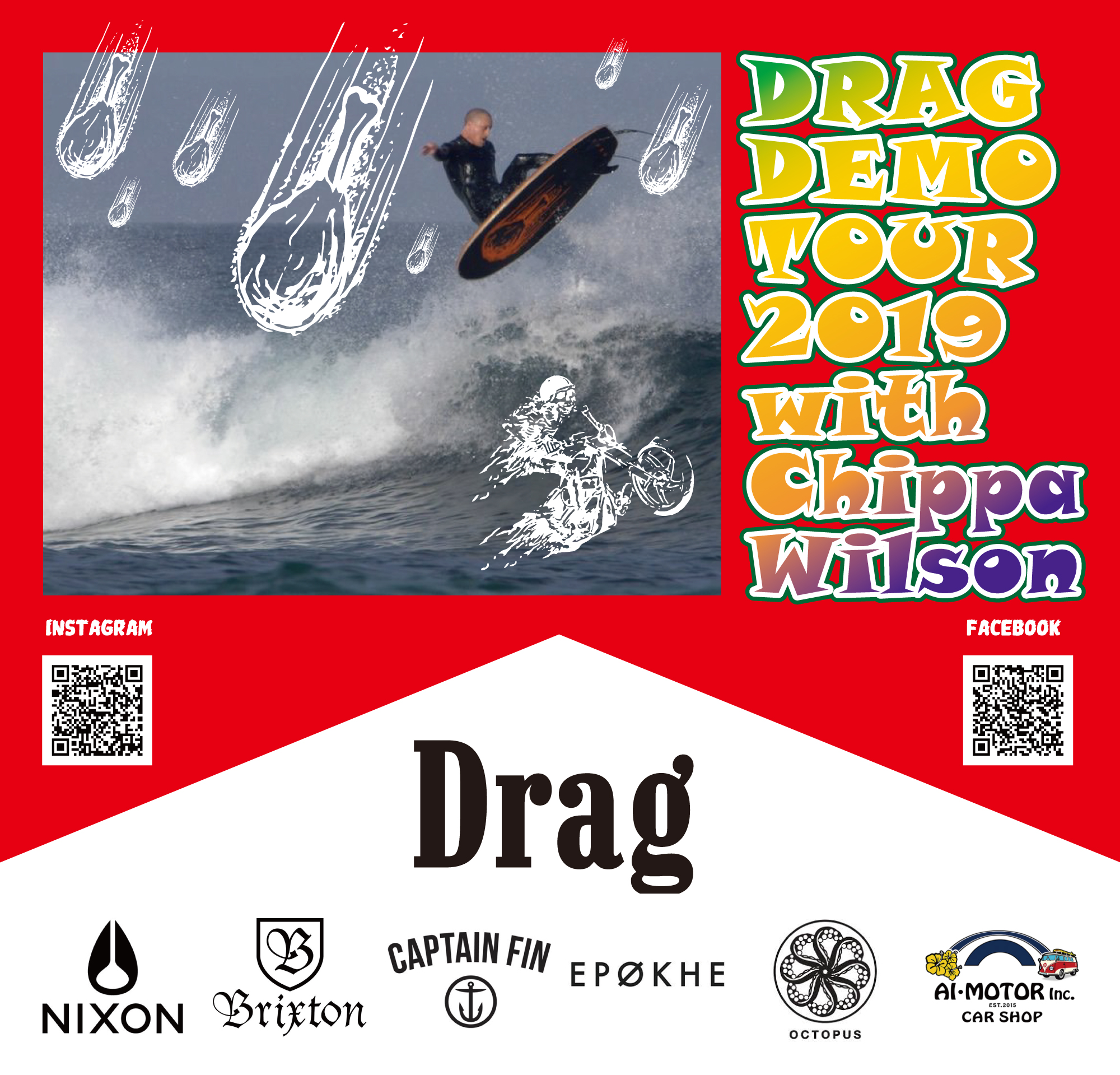 超高次元でスケートボードとサーフィンを融合させた唯一無二の個性的なそのスタイルで世界中に多くのファンを持つカリスマ・エアリストChippa Wilsonが、DRAG surfboardsの最新PVを引っさげて緊急来日することが決定!!