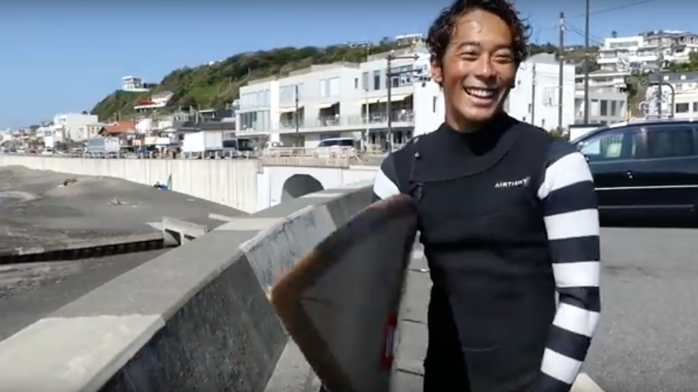 今回の作品は、台風接近中の湘南を舞台に、粂浩平、松野陽斗を中心とした湘南のプロサーファーたちによる地元での1日を追ったもの。