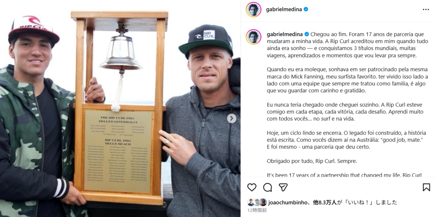 ブラジリアンとして初のワールドチャンピオンに輝いた3×ワールドチャンピオンのガブリエル・メディナ「Gabriel Medina」(32歳)。インスタグラムのフォロワー数は1,338万人と圧倒的な存在となっているガブリエルのメインスポンサーと言えば、リップカールであったのはお馴染みですね。そんなリップカールとガブリエルの契約が終焉を迎える…